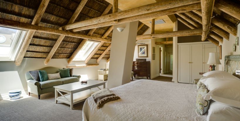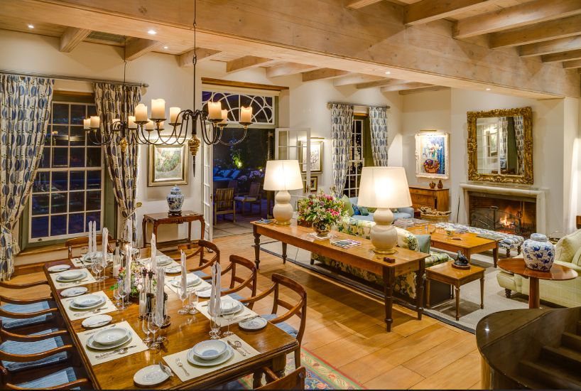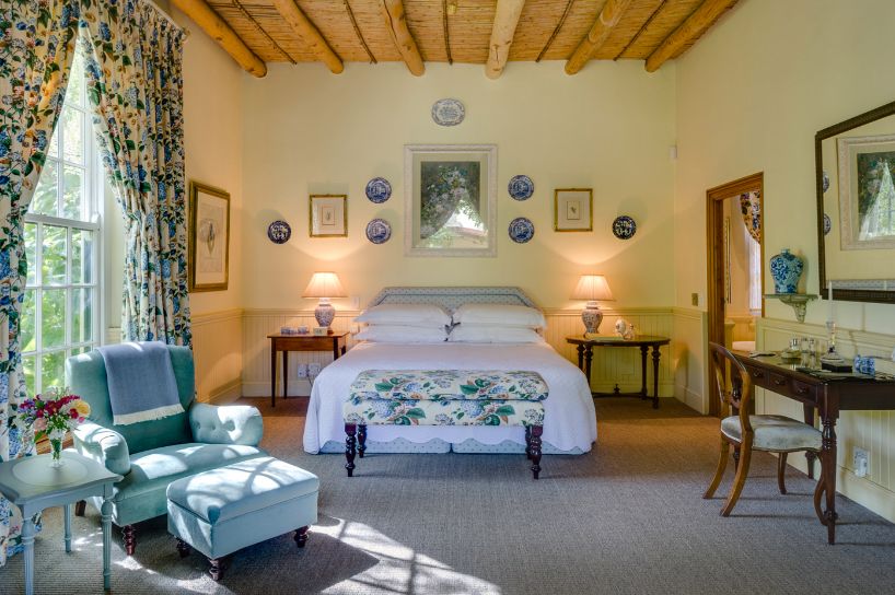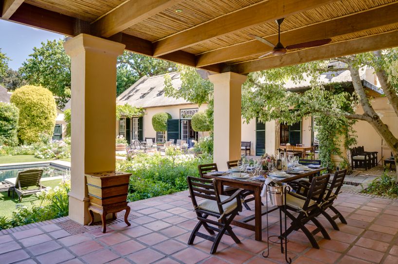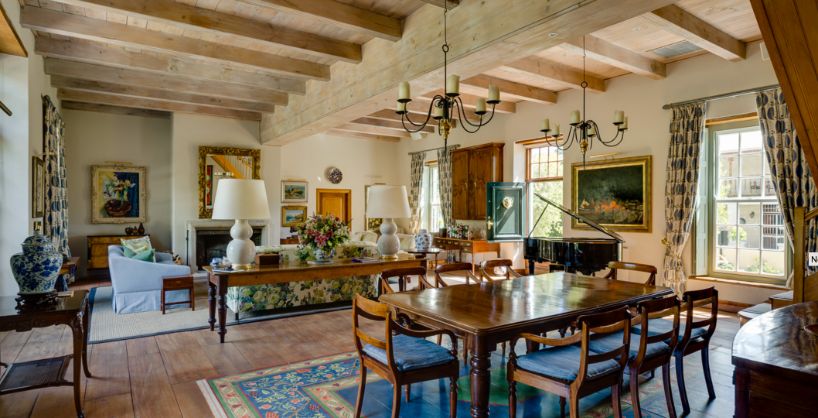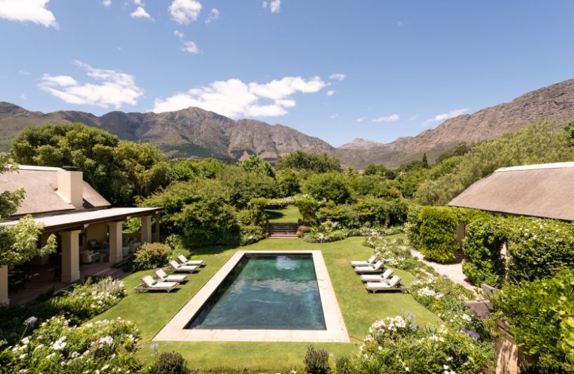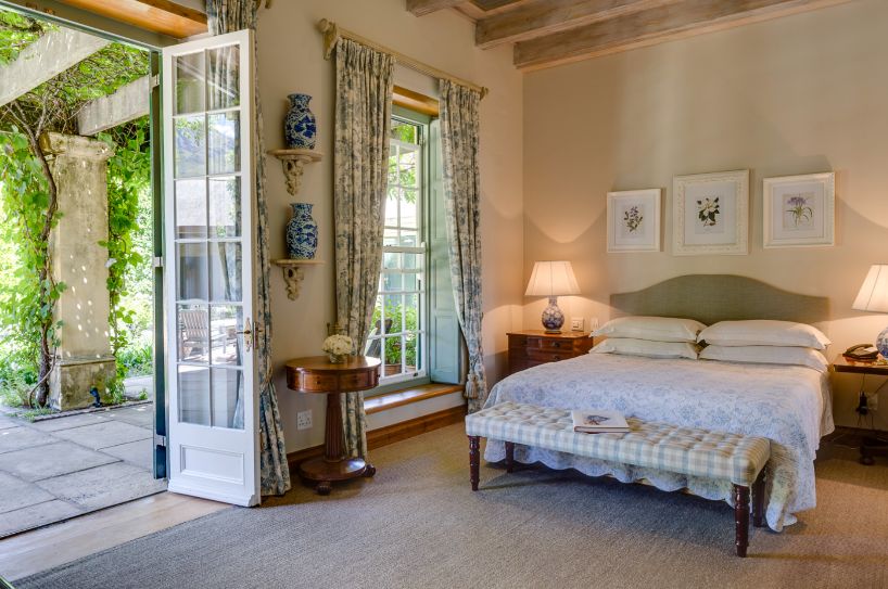 La Rive has been transformed into an incredibly warm and homely villa that resembles a marriage of colonial English and traditional Afrikaans / Dutch heritage. The sounds of water from various features around the grounds will transport you to a tranquil hideaway just off Franschhoek’s Main Road. A marvelously eclectic mix of Victorian, Cape Dutch and Georgian architecture and furniture, as well as numerous pieces from famous South African artists.